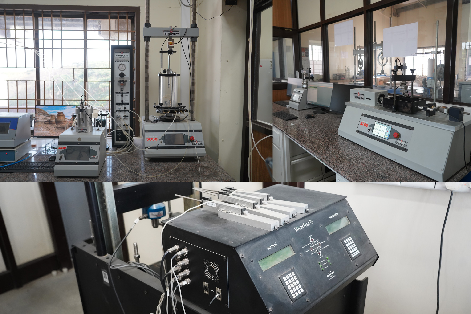 This facility includes fully computer controlled triaxial test apparatus, consolidation apparatus and direct shear apparatus. Using this facility the consolidation and shear strength parameters of all soil types can be determined with high accuracy using dedicated control systems and compatible software. Dedicated data acquisition systems with sensors are used to collect accurate data and the required graphs also can be plotted using the software.