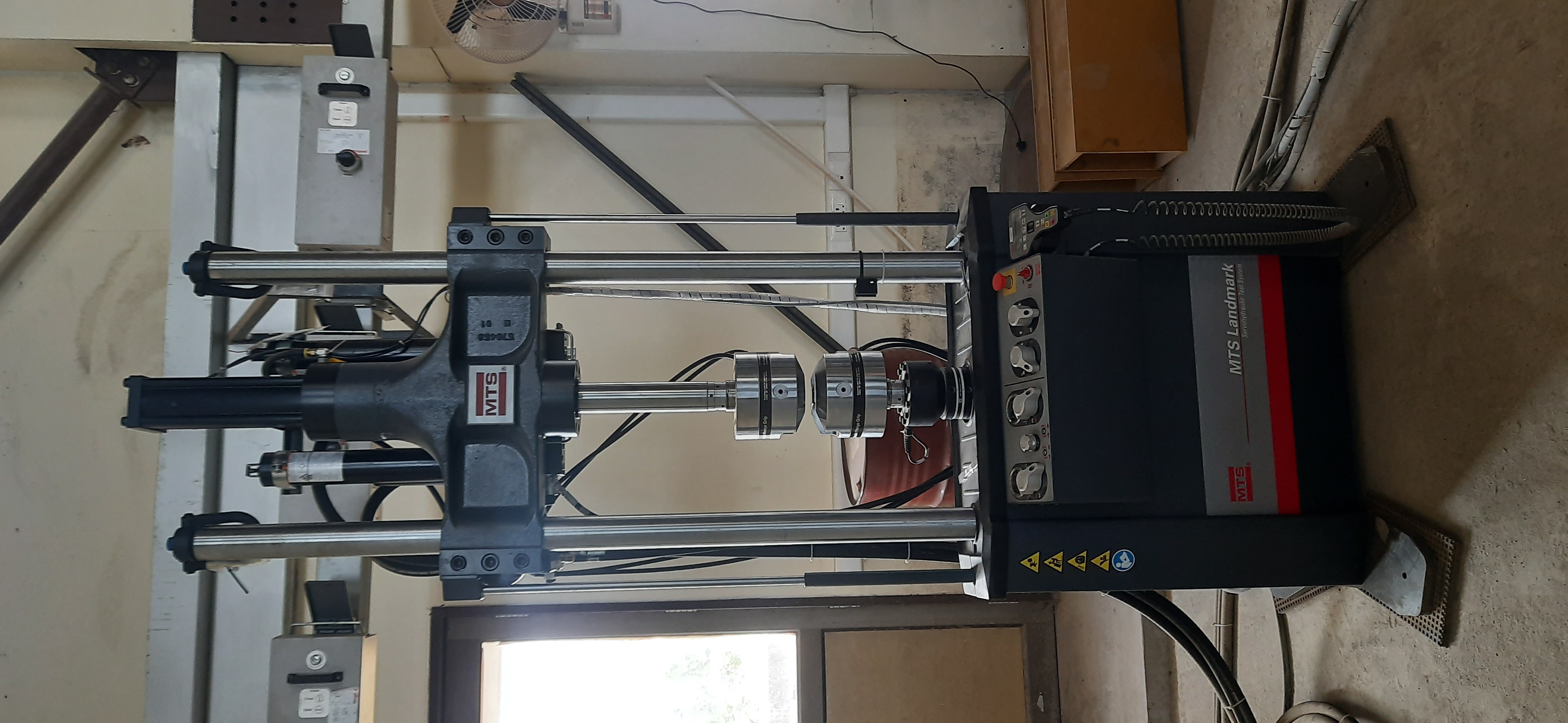 The MTS Landmark 100 kN test system (typically Model 370.10) is a floor-standing servo-hydraulic materials and component testing machine designed to apply controlled mechanical loads up to 100 kN (≈22 kip) in tension and compression. It features a rigid load frame with a crosshead-mounted hydraulic actuator and is part of MTS’s industry-standard Landmark servohydraulic test system family. It is used for mechanical testing of materials and small to medium components to determine properties such as strength, stiffness, deformation, fatigue/durability, and response to cyclic loading under realistic controlled conditions.