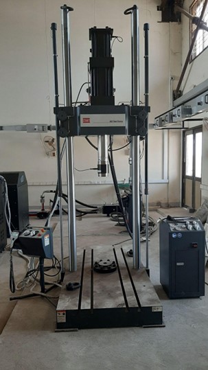 500 kN system is a servo-hydraulic materials and component testing machine capable of applying controlled forces up to 500 kN (≈110 kip) for engineering tests. It’s a floor-standing load frame with a hydraulic actuator integrated into the crosshead that applies precise, repeatable load and displacement to specimens.It is used to characterize mechanical properties and performance of materials and components under different load conditions — including tension, compression, bending, and fatigue