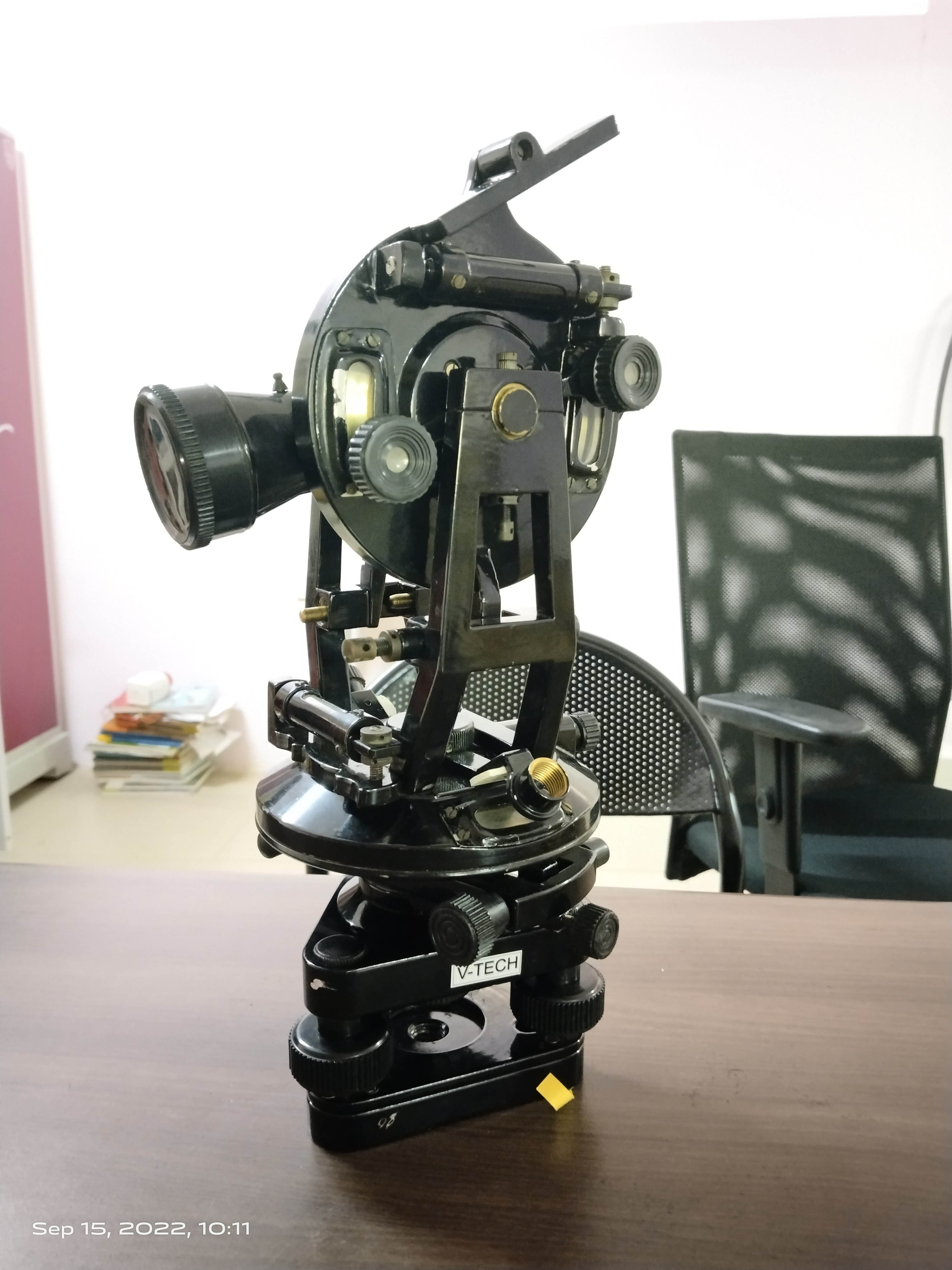 A precision optical instrument for measuring horizontal and vertical angles.